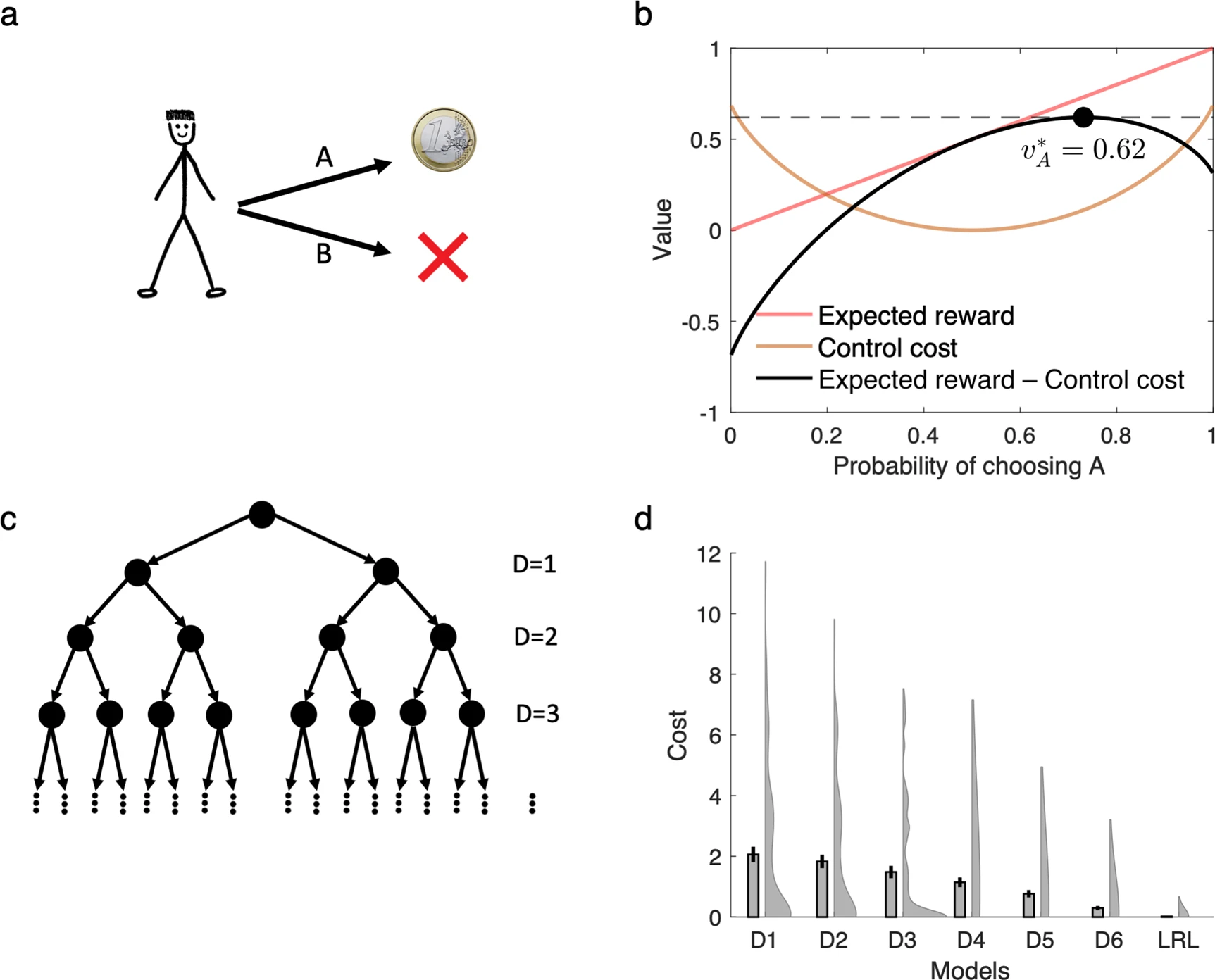 이러한 현상은 직관적으로는 명확하지만, 이론적으로는 몇 가지 퍼즐을 야기한다. 첫 번째는 왜 어떤 행동이 더 선호되는가이고, 두 번째는 왜 그런 행동을 억제하고 다른 행동을 수행하는 것이 ‘비용(costly)’처럼 느껴지는가 하는 점이다. 이에 대한 기존 설명은 뇌 자원의 경쟁(resource competition)이나 에너지 소모 같은 생물학적 비용을 들고는 했지만, linear RL은 전혀 다른 접근법을 제안한다.