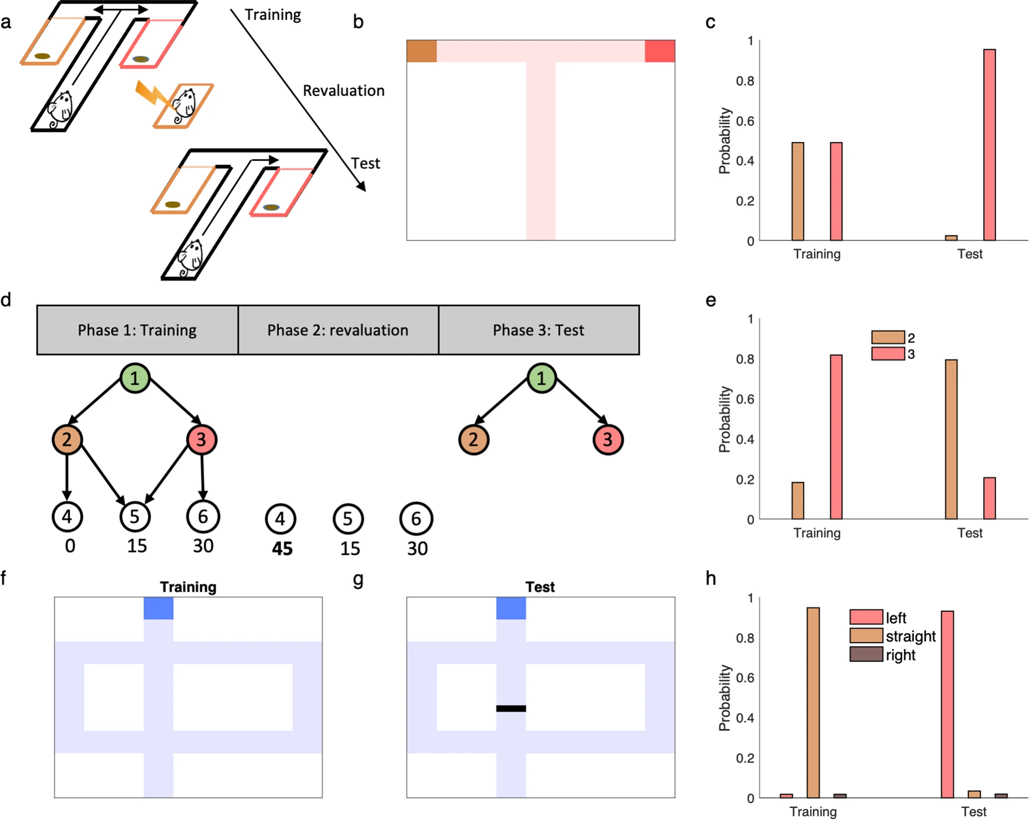 예를 들어 Tolman의 잠재 학습(latent learning) 과제를 보면, 쥐는 처음에는 두 개의 보상 구역이 있는 미로를 탐색하게 된다. 이후 그 중 하나의 보상 구역에서 전기 충격을 받게 되는데, 쥐는 해당 경로를 다시 경험하지 않고도 그 경로를 피할 수 있었다. 이는 미리 학습된 DR이 새로운 보상 정보에 따라 즉시 업데이트되어 새로운 정책을 유도할 수 있기 때문이다.