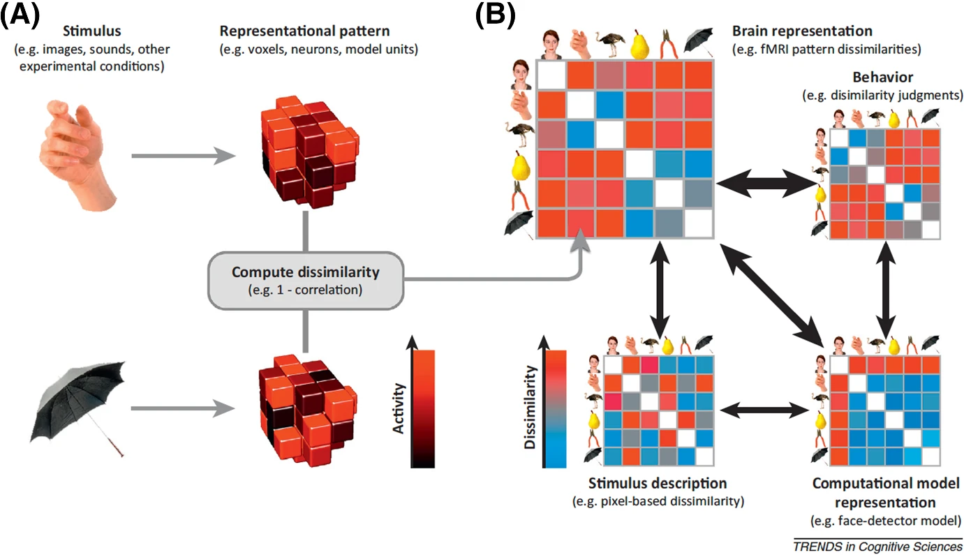 상술한 한계점에도, 특정 지역의 pattern은 여전히 중요한 정보를 가지고 있다. 이에 따라 단순히 특정 뇌 영역의 활성화 패턴을 분류하는 것 이상의 접근 방식이 필요해졌다. 이후 등장한 분석 기법 중 하나가 표상 유사성 분석(RSA, Representational Similarity Analysis)이다. RSA는 뇌 활동 패턴 간의 유사성을 분석하는 방법 으로, 기존의 분류(classification) 방식과는 달리 내부 유사성 관계 에 초점을 맞춘다. 구체적으로, RSA는 실험 조건 간의 신경 활동 패턴을 쌍(pair)으로 비교하여 유사성(similarity)을 계산 하며, 이를 이론적 혹은 실험적으로 도출된 구조화된 모델과 비교 한다(Diedrichsen & Kriegeskorte, 2017).
