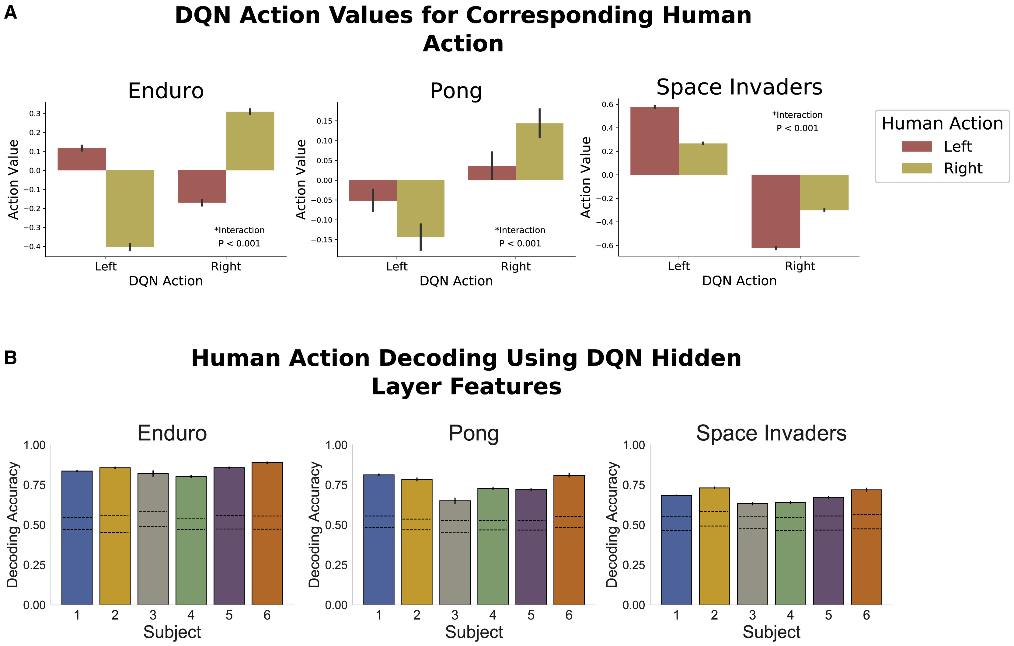 DQN의 내부 representation이 인간의 행동을 근사할 수 있으며, 이는 게임에 따라 예측 성능이 다르게 나타난다.